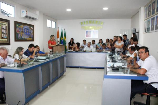Vereadora Monalisa Mesquita, Prefeita Heloide Estevam, presidente da Câmara de Vereadores Elson Lopes